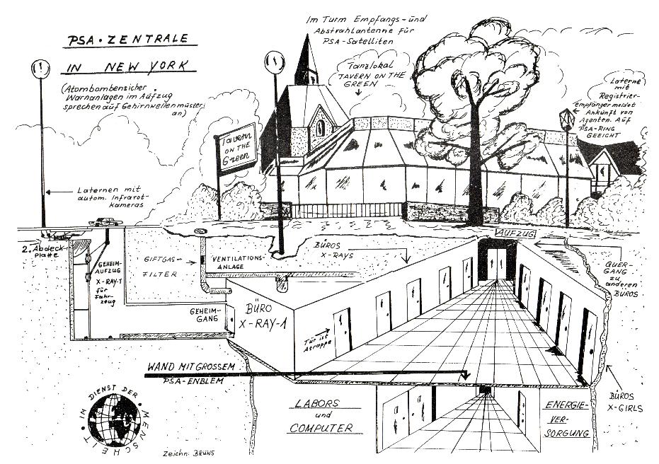Diese Zeichnung der PSA-Zentrale unter dem Tanzlokal "Tavern on the Green"