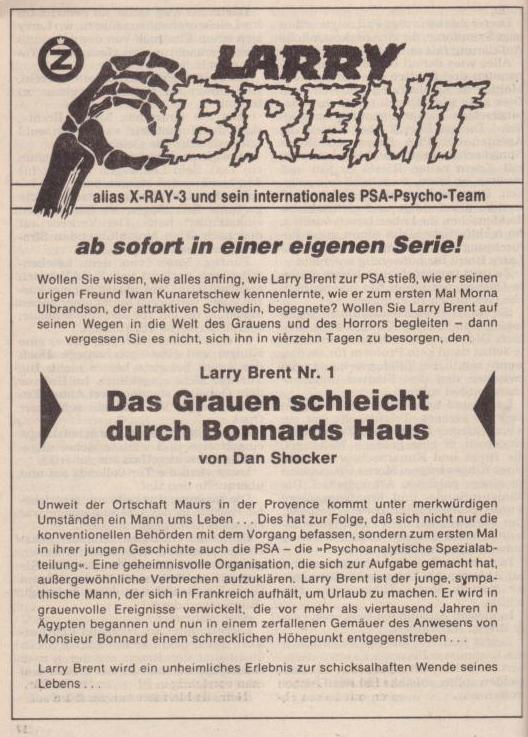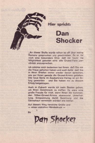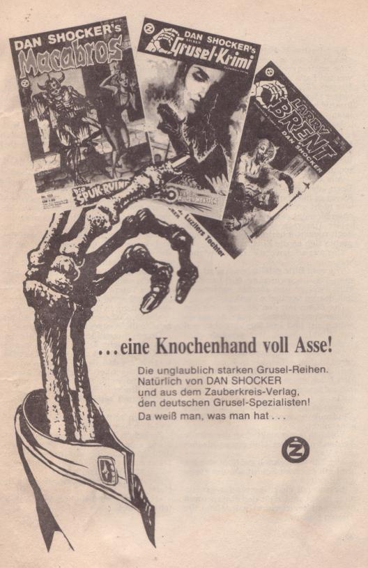 In verschiedenen Romanheften wurde immer wieder Werbung für Dan Shocker